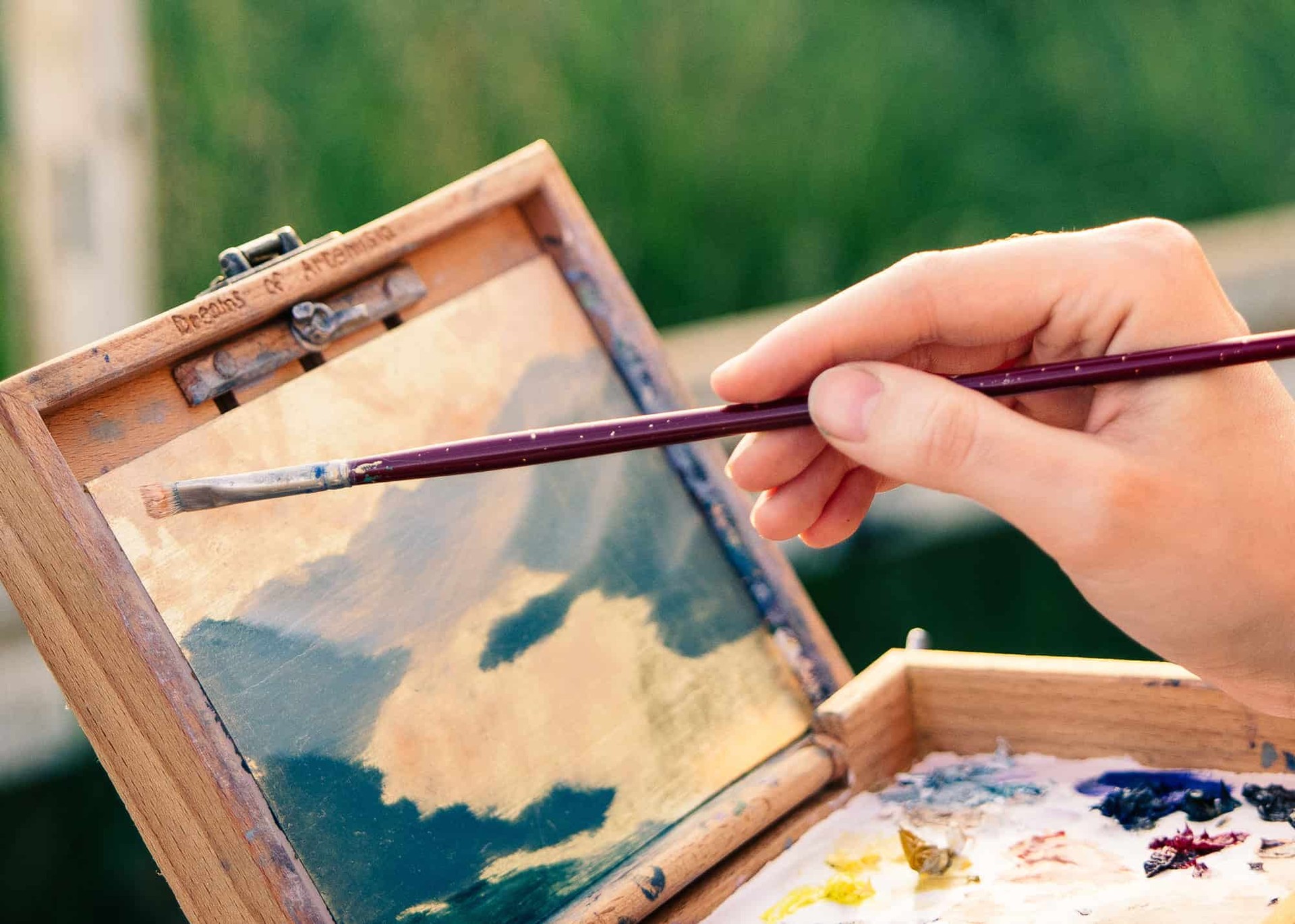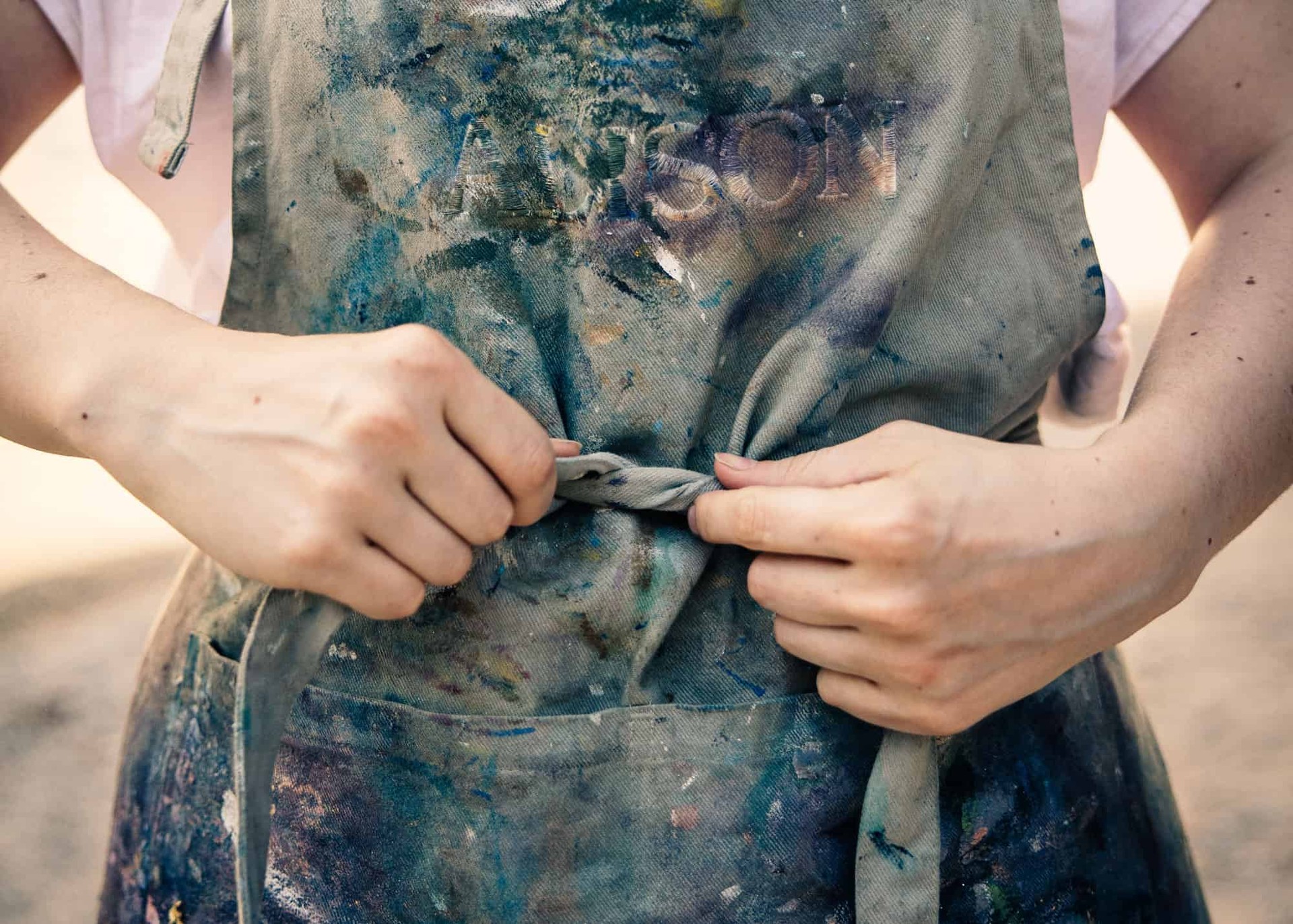 Sonia gaat op in haar werk. Ze brengt glanzende klodders titaanwit, gebrande sienna en vermiljoen aan op haar palet, die ze vervolgens behendig mengt tot een delicater spectrum. De diepte van het gouden doek weerspiegelt subtiel haar bewegingen en de doorschijnende verflagen ondergaan een dromerige metamorfose.